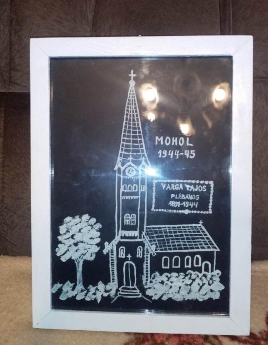 A bemutató lezárásaként, alkalmi ajándékként, a moholi templomról készült (üvegre festett – helyi festő műve) képet, illetve Baranyi István Moholról szóló monográfiáját adtuk át a vendégeinknek egy állófogadás keretében.