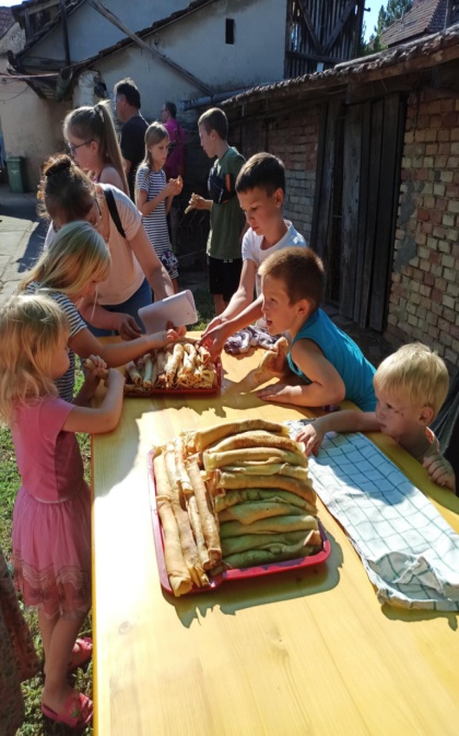 A 14,00 órától gyülekezők részére azután volt itt minden:- Szabadkáról jött a mesemondó, Kúláról a bűvész mutatványos, Bácsföldváról a palacsintázók. De sor került virágkötésre, agyagozásra, csizmadobálásra és dinnye evésre is.
