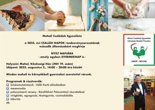 - A 3 napos rendezvényünk Moholon a Közösségi Házban illetve az udvarán lett megtartva, minden alkalommal nagy érdeklődés mellet.