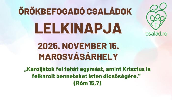 November 15-én szombaton, a Gyulafehérvári Főegyházmegyében első alkalommal, több mint hatvanan gyűltünk össze az örökbefogadó családok lelkinapján, melyet Kalányos Ottó segédlelkész vezetett. „Befogadni és befogadva lenni – Isten szeretetében” – ez a téma volt a nap középpontjában, mely szentmisével kezdődött, majd felnőtt, gyermek és családi programokkal folytatódott. A résztvevők egyöntetűen kérték a Családpasztorációs Irodától a program folytatását, reméljük egy szép hagyomány kezdődött el.