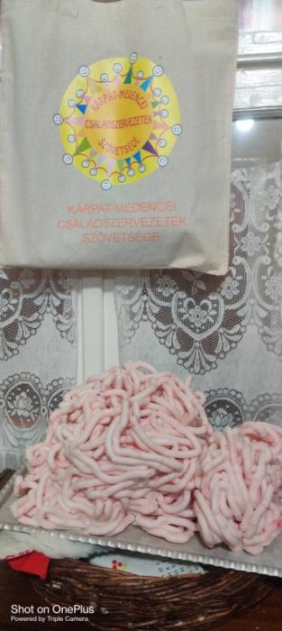Addig a nők benn a kiskonyhában reggelit készítettek és a hájas kifli elkészítési módját tanulták és kelesztettek a vendégék részére.