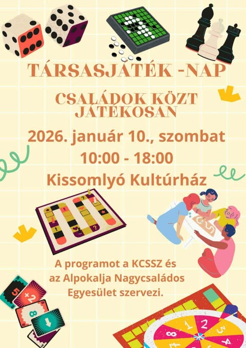 Január 10-én a kissomlyói kultúrház adott otthont annak a társasjátéknapnak, amelyet a szervezők már jó előre meghirdettek és gondosan előkészítettek. Az eseményre mintegy harminc résztvevő érkezett, így a kultúrház hamar megtelt jókedvvel, nevetéssel és barátságos beszélgetésekkel. A jelenlévők számos különféle társasjátékkal próbálhatták ki magukat: voltak kártyajátékok, asszociációs játékok, lépegetős társasok, valamint rajzolós és mutogatós feladványok is. A játékok során nemcsak a versengés, hanem az együttműködés és a közös élmények kerültek előtérbe.