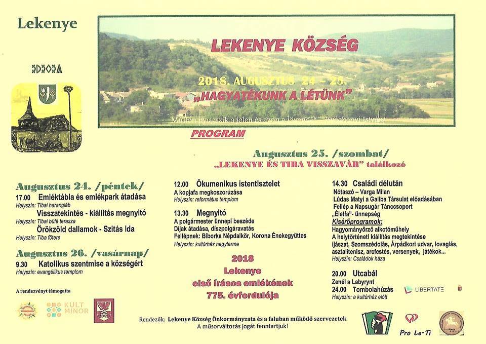 Lekenye augusztus 25-én első alkalommal, hagyományteremtő céllal rendezi meg a településről elszármazottak találkozóját. A „Lekenye visszavár” elnevezésű esemény fő szervezője a Pro Le-ti polgári társulás. A program délben ökomenikus istentisztelettel kezdődik a református templomban. Az éjszakába nyúló találkozót Lekenye polgármestere nyitja meg. Délután családi és kulturális programok várják az érdeklődőket, este pedig a kultúrház előtt egy fergeteges utcabál zárja az eseményt. A rendezvény megvalósításában a Kárpát-medencei Családszervezetek Szövetsége is részt vesz.