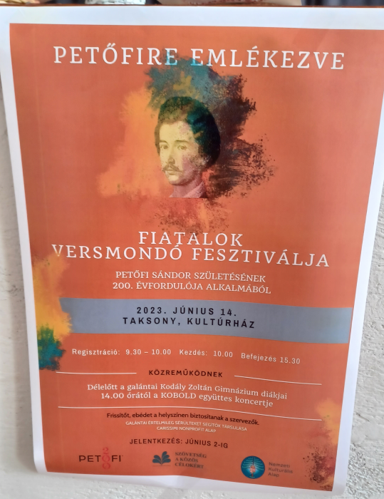 Tizennegyedik alkalommal került sor a Galántai Értelmi Sérülteket Segítő Társulás és a Carissimi Nonprofit Alap szervezésében a versmondó fesztiválra. A taksonyi művelődési ház június 14-én megtelt versszerető fiatalokkal, szüleikkel és segítőikkel. Ezúttal a Petőfi-bicentenárium jegyében zajlott a rendezvény.