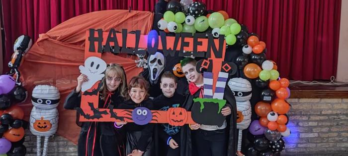 A helyszínt ijesztő dekorációk, sejtelmes fények és Halloween-témájú díszek tették varázslatossá, így a gyerekek teljesen átélhették a hangulatot.