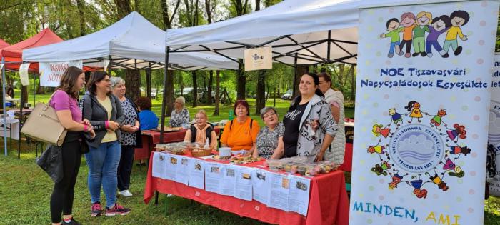A NOE Tiszavasvári Nagycsaládosok Egyesülete is képviseltette magát a civil szervezetek között szeptember 13-án a Mákfesztiválon. A rendezvény előtt már ügyes önkénteseink elkészítették mákos süteményeiket, amelyeket előre, kis sütiboxokba be is csomagoltuk. Így legalább 20 féle süteményből összeállított kis válogatás várta a szombati rendezvény résztvevőit, akik kóstolójegyek ellenében vihették, fogyaszthatták azokat. Nagy sikere volt a nagycsaládos sütiknek, illetve az ebédidőre elkészült szilvalekvárral töltött vaníliasodós, mákos gőzgombócainknak is. Köszönjük szépen mindazon tagcsaládnak, akik otthon elkészített süteményüket ajánlották fel e nemes cél érdekében. Hálás szívvel köszönjük önkénteseinknek (Tóthné Nácsa Irén, Tóth Dominika, Veréb Andrea, Aranyi Hanga, Kovács Istvánné, Kovács Szilvia, Losoncziné Kéki Judit, Mészáros Józsefné, Köblös Katalin, Nyánku Levente, Kuik Imre, Kuik Lilla, Ignácz Balázs) a rendezvény napján a gőzgombócok elkészítésében, pakolásban, a sütik szállításában, s az árulásban való segítséget. Szeretnénk külön köszönetet mondani Veréb Andinak, aki a finom Andi-féle sütiket ajánlotta fel a sütiboxainkba. Illetve nagyon szépen köszönjük Kuik Imrének és kuktáinak a szuper finom gőzgombóc ötletét, elkészítését, árulását. Egyesületünk az árusításból keletkezett szép összeget adományként kezeli, s majd a jövőbeni rendezvényeinek megvalósítására fordítja.