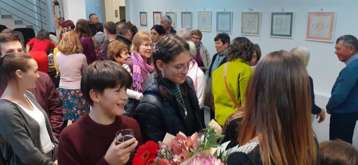 Délután, a Székelyföldi napok keretében a Kájoni János Megyei Könyvtár alagsori termében került sor egyesületi tagunk, Nagy Szidónia Éva nagycsaládos édesanya, tanító, képzőművész kiállítására, ahol grafikai rajzai mellett érdekes labirintusba érkezhetett a szemlélő, látogató.