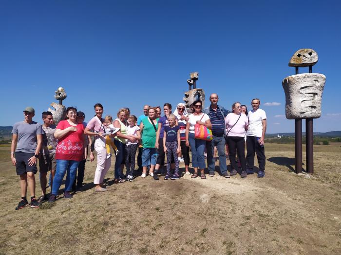 Tudtam, hogy sikeresek leszünk, mert sok fiatal szülő és gyermek jelentkezett a kirándulásra, így lelkes csapatként érkeztünk meg az első állomásra Hegyestűre. A legnehezebb hellyel kezdtük, hogy még frissen legyen erőnk felkapaszkodni a 13%-os lejtőn és a sok lépcsőn, amely pompás kilátóhelyre vezetett minket. Különböző időpontokban, de végül mindnyájan felértünk a geológiai természeti csodához a kétszintes, függőleges bazaltoszlopokból álló, óriási sziklafal lenyűgöző látványához. A következő állomásunk Kővágóőrsön Veszprémi Imre alkotása, a Káli -medence felvigyázóiként emlegetett az Emberi Komédia szoborcsoport megtekintése volt. Különleges látványt nyújtottak a mészkőből és acélcsőből készült óriások.