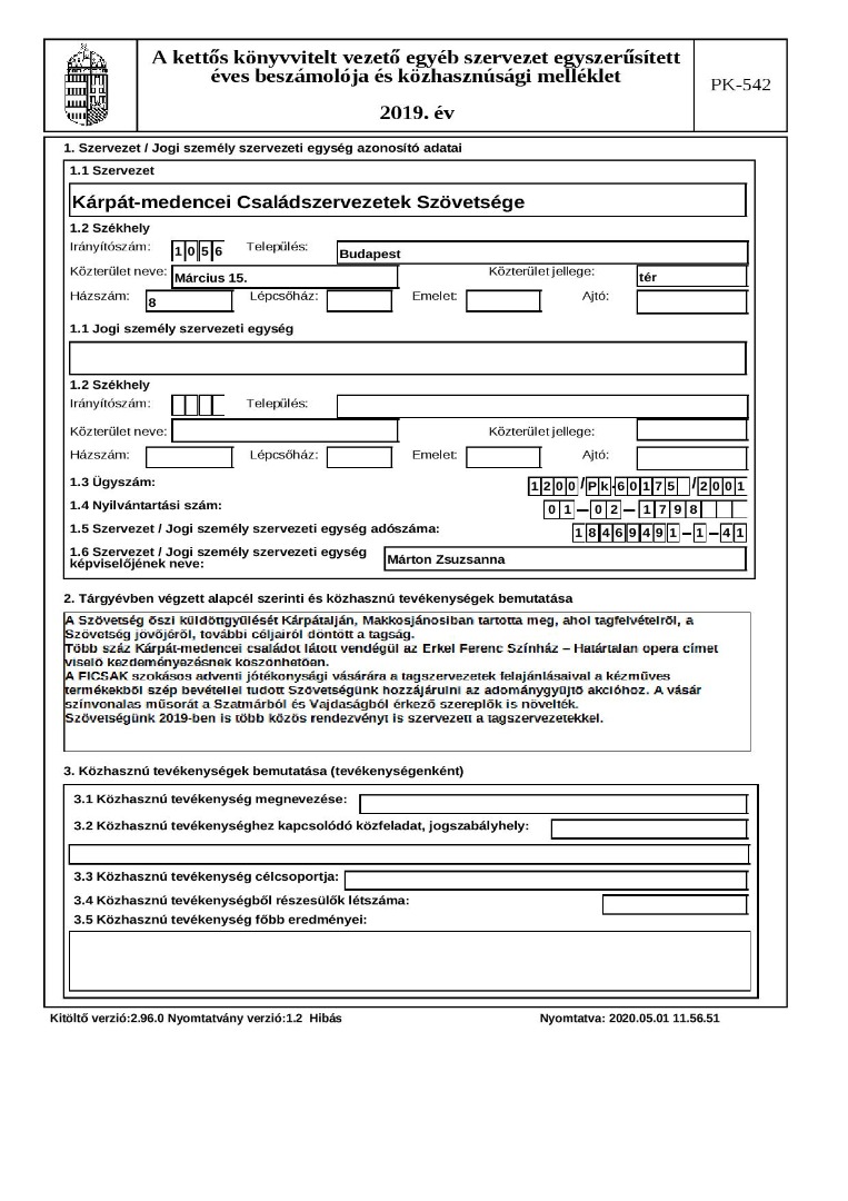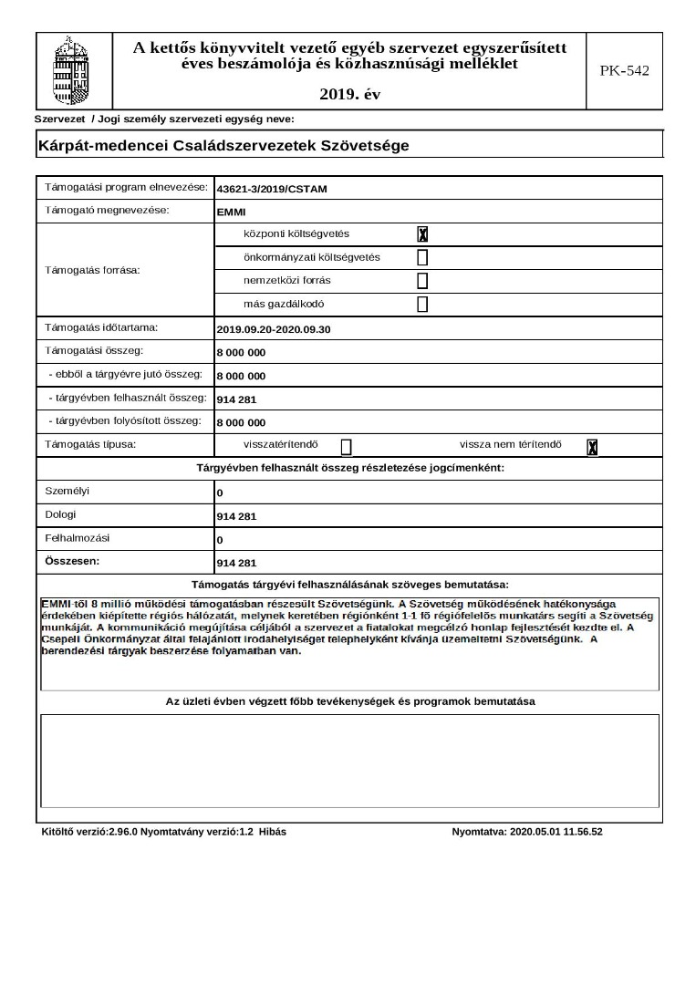 Közhasznúsági jelentés 2019