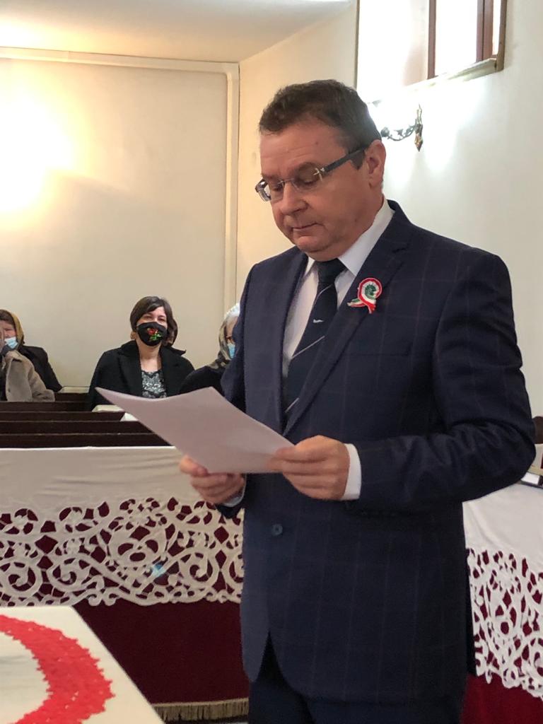 Ezekbena napokban szerte a Kárpát- medencében, ahol magyar ember él, különboző megemlékezések, ünnepi alkalmak vannak. Még akkor is, ha a koronavirus szedi az áldozatait a környezetünkben megkell állnunk egy pillanatra és minden népnek és minden nemzetnek önmeghatározása szempontjából vissza kell tekintenie a múltba és onnan igyekeznie a jelenre és a jövőre célokat megfogalmaznia. És nemzetünknek, Istennek hála,van akikre és amire tekintsen. Voltunk magasságokban, voltunk mélységekben. Voltak súlyos próbatételek, de voltak isteni csodák és áldások a népünk és a nemzetünk életében. A mai napon, amikor a márciusi forradalomra, a márciusi ifjakra emlékezünk, az ő kiállásukból próbálunk erőt meriteni, üzenetet, célokat megfogalmazni a bátorságról, a lelkesedésről és a tenni akarásról, ami jellemezte az akkori generációt. Ha meg akarjuk érteni az ünnepet, ha a szívünk fölé tűzött kokárda jelentette büszkeséget értelemmel is meg akarjuk tölteni, akkor nem csak lehetőségünk, de feladatunk is, hogy az akkori folyamatok egészét szemléljük, mégpedig a jelen felől. Mert a jelen kihívásaira való válaszok a történelmi tapasztalatban vannak, a döntésekben. Mert döntenünk kell arról, hogy hol is akarunk élni, hogy hová akarunk tartozni és mi tartozzon hozzánk. Haza ott van, ahol sok-sok emberöltő óta ugyanazon a nyelven szólítjuk meg egymást. Ahol magyarul meséljük a mesét, magyarul éljük a mindennapot, magyarul, makacsul ragaszkodunk a tájhoz. Ezt a hazát nem lehet lecserélni, kiosztani, elárulni vagy félbevágni, hiába is rajzolják át akárhányszor a határokat. Kívánom, hogy a falu közössége tudjon mindig békében és egyetértésben ünnepelni, adjon hozzá erőt a magyar ősök tisztelete, mondta többek között az alpolgármester. A Vince testvérek énekes-verses összeállitását követően Demeter Stefánia Katalin kolozsvári konzul osztotta meg ünnepi gondolatatait. Ezt követően a nagyváradi Kiss Studió Szinház képviseletében Meleg Vilmos szinművész nyújtott át egy alkalomhoz illő verses összeállitást.