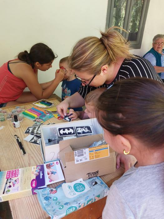 A jó idő is nekünk kedvezett, vidám gyermekzsivaj töltötte meg az erdőszéli tanyánkat. Sok csemeténk kedvence, ugrálóvár fogadta az érkezőket. Sok játék, verseny megmozgatta a felnőtteket is. Volt lufifújó, buborékfújó, célbadobó és csigafutam. Legnépszerűbb a csigafutam volt. Arcfestésre gyerekek és felnőttek is sorban álltak. Mókás, vidám képek készültek.                                                                                                                                            Tízórai és az uzsonna a családok által sütött sütemény volt. Az ebédet (babgulyás) Pisti apuka bográcsban főzte. Plédeken kis pihenőt tartottunk, majd folytatódott estig a játék, móka. Nem csak a gyerekeket, de a felnőtteket sem kellett ringatni estére.