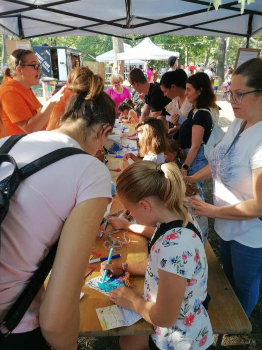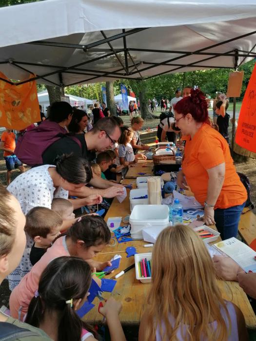 Standunknál idén is változatos kézműves foglalkozásokkal vártuk a kicsiket és nagyobbakat egyaránt. A gyerekek készíthettek saját díszeket, rajzokat, apró ajándéktárgyakat, miközben megismerkedtek a népi kézművesség alapjaival. A kézműveskedés mellett korosztályhoz igazított játékos feladatokkal is készültünk, amelyek nemcsak szórakoztatóak, hanem fejlesztő jellegűek is voltak. A résztvevők örömmel próbálták ki magukat ügyességi és csapatjátékokban, miközben új barátságok is szövődtek.