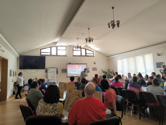 Részt vettek rajta az egyesületünk gyergyói és domokosi foglalkoztatottjai is. Közel 50-en gyűltünk össze, hogy meghallgassuk Dr. Tankó Levente prezentációját a helyes szájápolás fontosságáról.