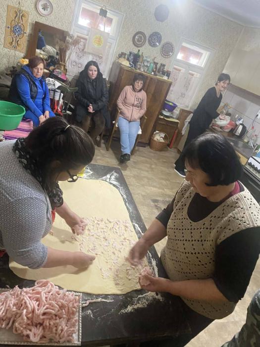 A nők, fiatalasszonyok, a konyhában Ancsa vezetésével tanulták a hájas kifli készítést.