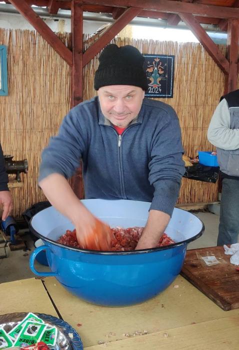 Vidám közös munkával, építő beszélgetésekkel indult 2026 os év a Tájházban .A gyermekeket töpörtős pogácsával és a felnőtt vendégeket körtepálinkával fogadtuk., reggel 6 órakor. Minden vendég végig követhette, és részt vehetett a munkában, a disznó feldolgozásában. Meglepően sok fiatal férfi jött el és próbálkozott a hús szeletelésével, paprikás főzéssel.