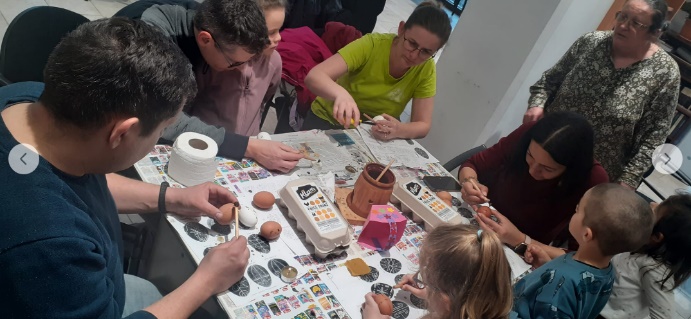 A hónapot a március 31-i, Nagykedden megtartott húsvéti hagyományos tojásírással zártuk, eljött közénk Bíró Gyöngyi hagyományőrző édesanya, és segített a szebbnél szebb írott tojások elkészítésében. Az ő gondoskodása alatt közel 200 tojás került feldíszítésre, és idén első alkalommal kiegészítve a kikapcsolódási lehetőségeket, Lázár Iru édesanya a legkisebbeknek, legkisebbekkel dúdolt, és Albert-Homonnai Emőke múzeumpedagógus a budapesti Néprajzi Múzeum csíkszeredai munkatársa társasjátékozott a nagyobbacskákkal, ha már megunták a tojásfestést.