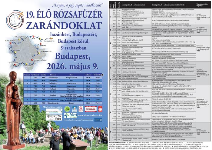Jézus nevében és Jézusért útra kelni május 9-én. Imádkozni hazánkért, a budapesti emberekért, a békéért. A zarándoklat közelebb visz Istenhez. Az Ő kegyelme megérinti az embert és új emberré alakít. A Szűzanya is velünk lesz, mert Ő a mi legfőbb pártfogónk, segít imádkozni, segít küzdeni és nem hagy elveszni.